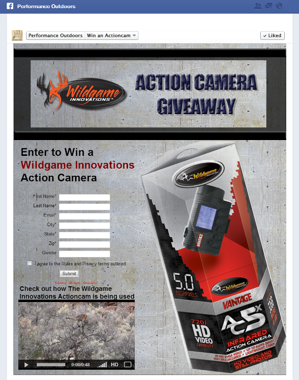 A sweepstakes is a chance-based promotion that is simple to setup and allows for easy entry. Visitors typically enter by completing a simple form with fields for their name and e-mail address, and then a winner or winner(s) are drawn randomly after a set date. As with most promotion apps available for Facebook there can be a fan or Like Gate image that requires the fan to “Like” the Page in order to access the entry form.
