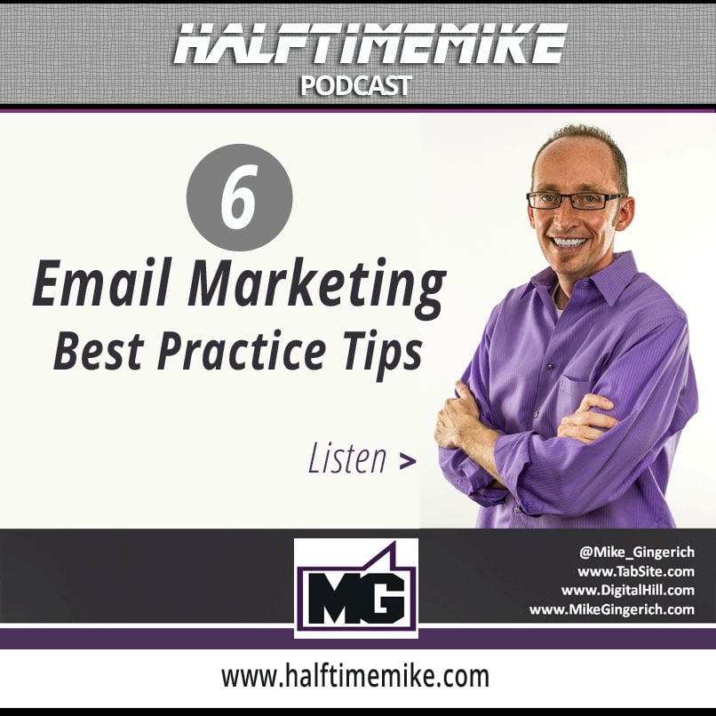 In this episode of Halftime Mike I address a question posed to me by a small business marketer on why his open rate and link clicks were low in his email campaign.  I dive into 6 Email marketing best practice tips that can help you succeed.  It’s a simple blueprint for your email game-plan!