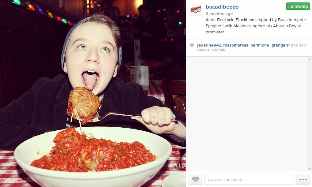 Visitors are also encouraged to post their own photos from any location, so there’s plenty of selfies with people diving into those gigantic meatballs. The restaurant also includes some of its newspaper or magazine ads, to offer extra exposure for those who missed that particular promotion.
