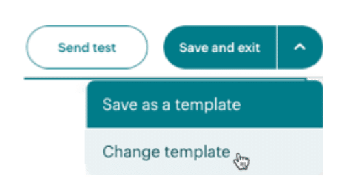 Quick tip: It’s not that there is no going back. You’re free to change your email template. Even after you’ve started building it. Find the tab that says Save and exit menu. Then, select Change template from the dropdown.