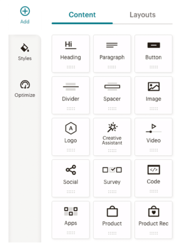 Layouts help structure your email into rows and columns for better visual flow. You can choose between: