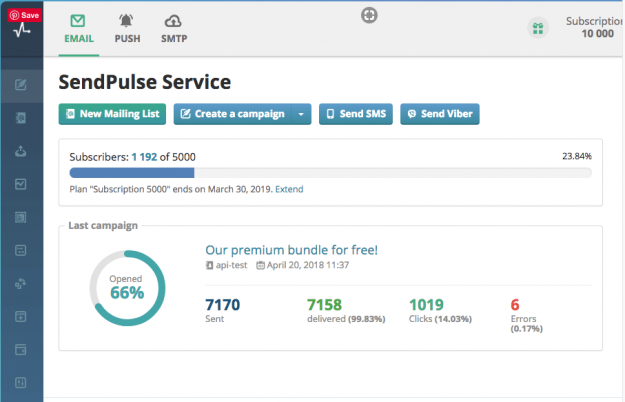 SendPulse supports email marketing, SMS marketing, and Web Push services as noted while also offering key tools like marketing automation for abandoned carts, purchase upsells, registrations, and custom events; and a SMTP service so websites can have a reliable sending service with a flexible API. The following are what you stand to gain from each service;