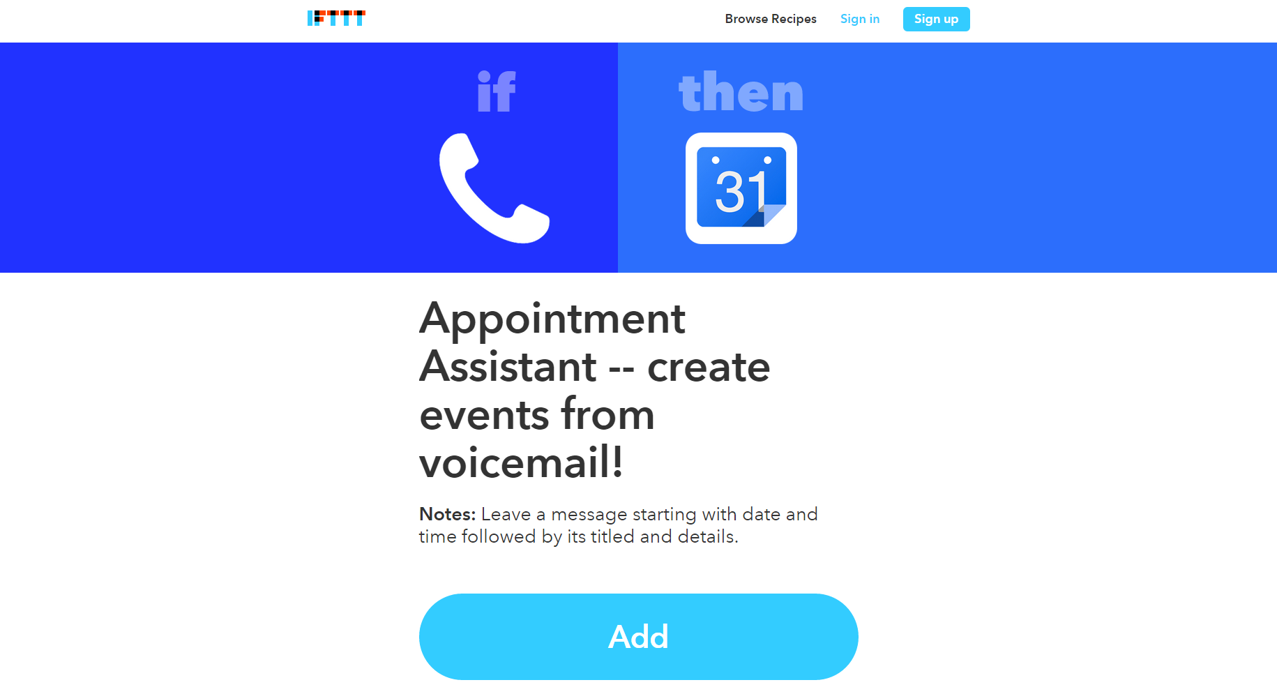 The message can be automatically added as an event to whatever electronic schedule you keep. Leave a Message IFTTT Recipe