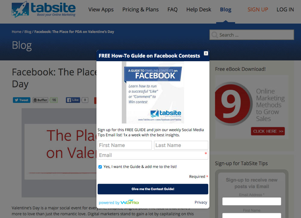 How is the call to action integrated on that page? Take a look at my site here, how many CTA’s do you see? I use waftio for the main pop-up and I also have the call-out at the end of the post.